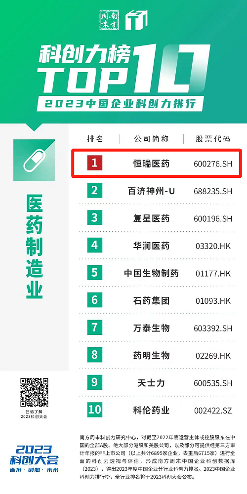 近日,南方周末科创力研究中心发布了与居民日常生活密切相关的30个行业中科创力排名前10的企业榜单。开云体育医药凭借多年来在科创领域的大力投入和优秀成果,蝉联中国企业科创力排行医药制造业榜首。