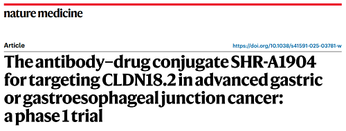 开云体育医药CLDN18.2 ADC创新药SHR-A1904治疗胃癌临床研究结果荣登Nature Medicine